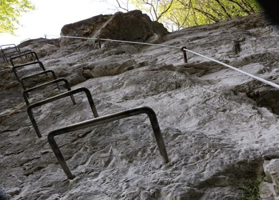 da gre za zelo zahtevno planinsko pot in da je uporaba čelade, plezalnega pasu
