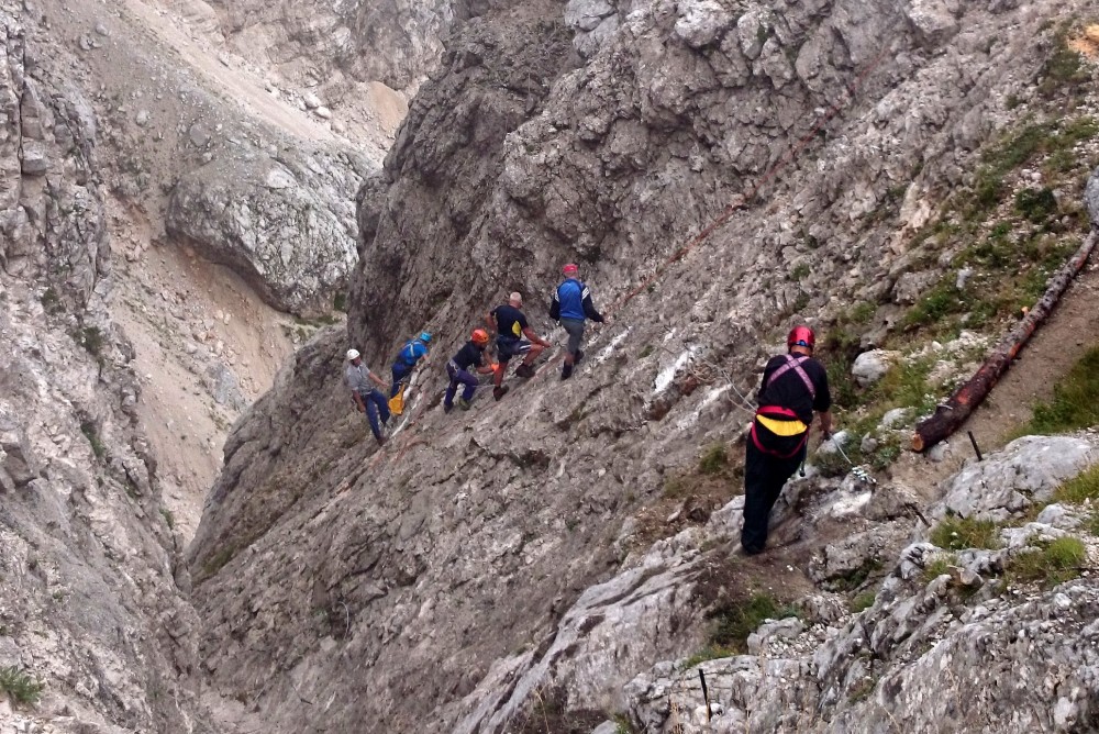 Sanacija poti skozi Žrelo med Češko kočo na Spodnjih Ravneh in Kranjsko kočo na Ledinah (foto Tine Marenče)