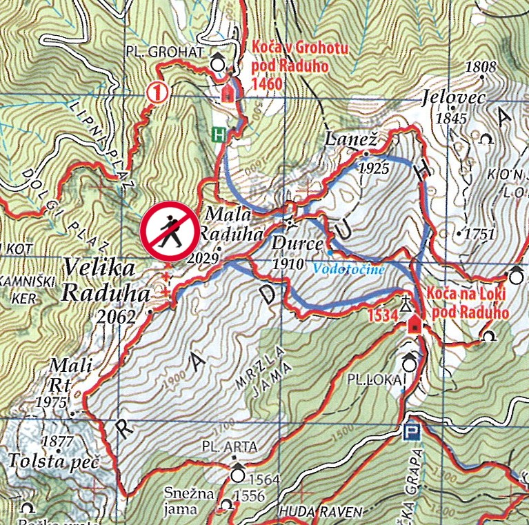 Planinsko društvo Mežica sporoča, da je prišlo do podora na zavarovani planinski poti na Raduho. Na zelo zahtevnem odseku planinske poti so skale zaprle pot in je neprehodna. Varovala so uničena. Podor je še vedno aktiven. Pot je do nadaljnjega zaprta.
