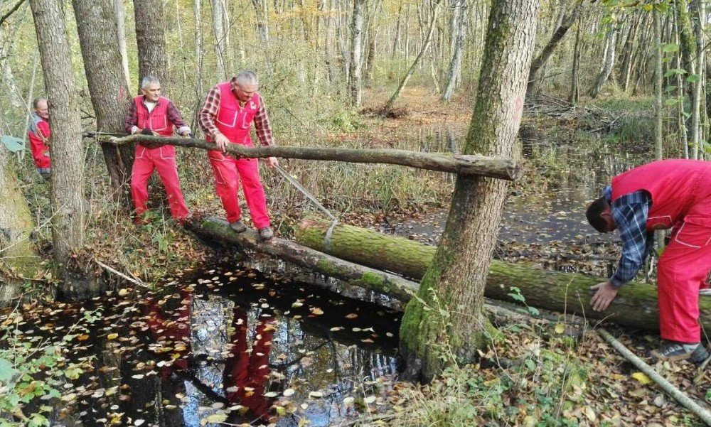 Ob začetnem pozdravu Mladena Živkovića, vodje OPP Dolenjske in Bele krajine, ter domačega predsednika Franca Štokarja smo podarili sendviče in vodo in razdelili markaciste v pet skupin. Ureditev trase je potekala od Gržeče vasi (avtocesta) čez Krakovski gozd, skozi Kostanjevico do Velikih Vodenic. Prva skupina petih markacistov je uredila pot iz Gržeče vasi do spomenika padlim v drugi svetovni vojni v Krakovskem gozdu. Druga skupina desetih markacistov je uredila zelo zahtevni del od spomenika do lovskega bivaka Veliki Podlog. Predel gozda rasti jesena je povsem uničen, tako da smo morali z dvema motornima žagama počistiti podrast in padlo drevje in na novo markirati območje kakih 300 metrov.Tretja skupina štirih markacistov je šla od lovskega bivaka mimo Leničevga doma do gostilne Žolnir v Kostanjevici. Četrta skupina štirih markacistov je uredila traso iz Kostanjevice proti Velikim Vodenicam. Peta skupina sedmih markacistov je imela nalogo postaviti mostove - brvi čez vodne kanale, ki potekajo čez Krakovski gozd in so bili narejeni v času službovanja gozdarja Josefa Ressla. Ta skupina je imela zelo zahtevno delo zaradi razmočenega terena in prenašanja debel čez kanale, v katerih je bilo polno vode. Zaključek ob 13 uri. Vsi skupaj smo se zbrali na Malih Vodenicah pri Ivanu Pircu in njegovi ženi Zofki. Skupaj sta pripravila toplo malico - bograč, sponzorirala vino in kostanj, ki smo ga na koncu akcije z užitkom pojedli ob kozarčku cvička.