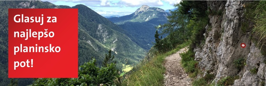 Glasujete za najlepšo pot med 10.000 kilometri slovenskih planinskih poti prek obrazca na tej povezavi, dosegljiv je tudi s klikom na spodnjo sliko. Med vse, ki boste glasovali, bodo z žrebom razdelili praktične nagrade. Markacisti planinskega društva, ki skrbijo za pot, ki bo izbrana za Naj slovensko planinsko pot, pa bodo dobili pravico do posebne nagrade partnerja akcije Intersporta, d.o.o. Glasovanje poteka le še do 30. junija.