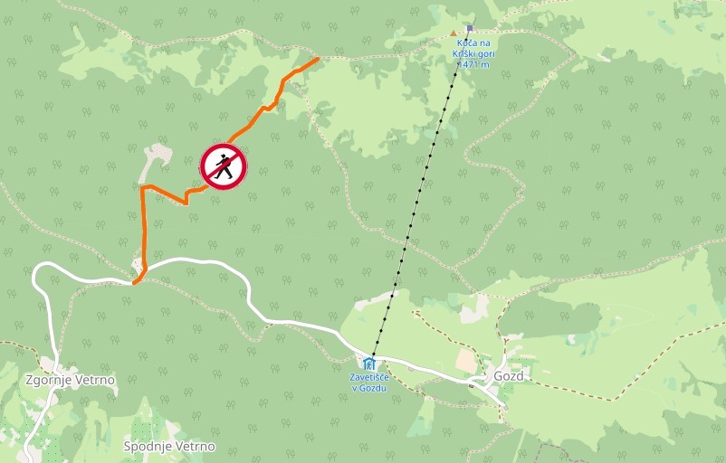 ----------------------------------------------------------- Omenjena pot je bila med 3. in 24. avgustom popolnoma zaprta zaradi gradnje gozdne vlake. |