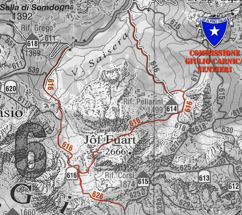 - Pot št. 616 (Pot Chersi - Sentiera Carlo Chersi) je ZAPRTA na odseku med bivakom Mazzeni (Bivacco Mazzeni) in sedlom Nabojs (Sella Nabois)