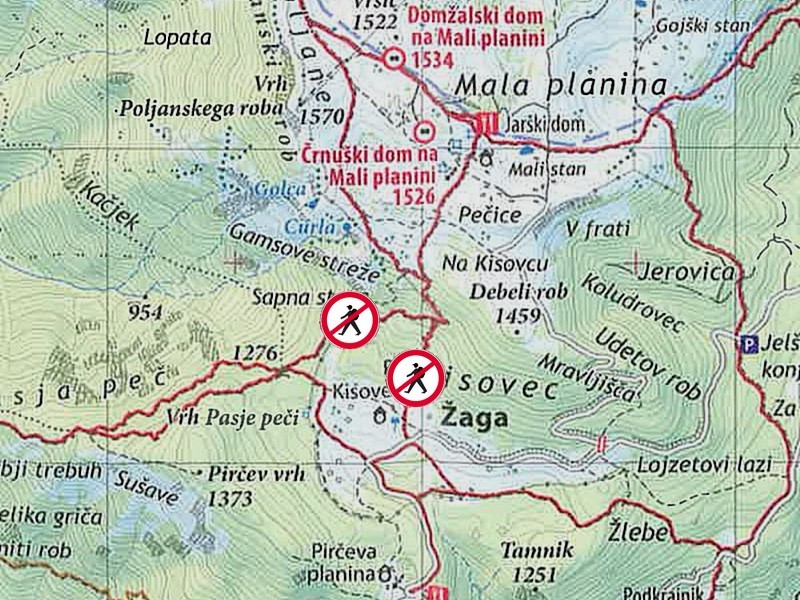 Poti bodo zaprte na Sedlu Kisovec, pri Štalah na Pl. Kisovec, na križišču iz Velike in Male pl. proti Krivčevu, proti Pl. Kisovec in proti Pasjim pečem (Stahovici).