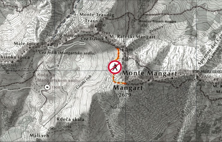 ponedeljek, 15. julij 2019 ob 14:05, ogledov: 6935 Slovenska pot na Mangart ZAPRTA zaradi vzdrževalnih del!| Planinsko društvo Bovec | | | | Objavil(a): Matej Ogorevc | | Planinska zveza Slovenije in Planinsko društvo Bovec obveščata, da bo od 16. do vključno 18. julija 2019 ZAPRT zelo zahtevni odsek Slovenske poti na Mangart! | V skladu s 16. členom Zakona o planinskih poteh (Uradni list RS, št. 61/2007) Planinska zveza Slovenije in Planinsko društvo Bovec obveščata, da bo med 16. in 18. julijem 2019 ZAPRT zelo zahtevni odsek Slovenske poti na Mangart (Mangartsko sedlo - Mangart ).