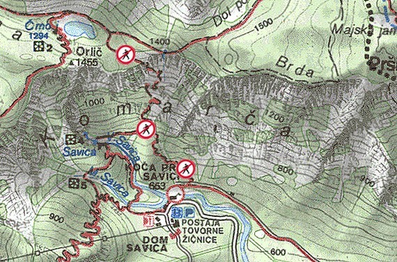 OPOZORILO: Uporabniki uporabljajo planinske poti na lastno odgovornost. Uporabniki planinskih poti morajo pri uporabi planinskih poti ravnati samoodgovorno in odgovorno do drugih tako, da ne ogrožajo ali poškoduje sebe ali drugega. Uporabnik je dolžan planinsko pot uporabljati tako, da se po njej ter na in ob zemljišču, preko katerega poteka in na drugih nepremičninah ter favni in flori ob njej ne dela škoda. Prepovedano je omejevati dostop na planinske poti ter poškodovati, odstranjevati ali uničevati markacije, usmerjevalne table, skrinjice in varovalno opremo in druge oznake ali uporabljati neoznačene bližnjice. |
