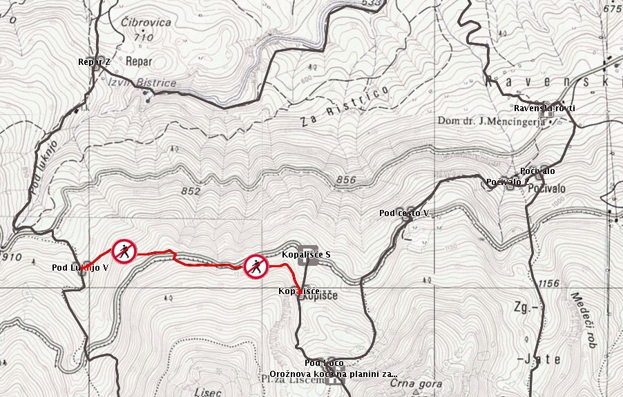 Prvotno obvestilo: Zaprt je odsek poti med križiščem poti Pod luknjo in križiščem poti Kopišče. Dostop do Orožnove koče na planini Za Liscem pod Črno prstjo iz smeri Polja in Žlana ni mogoč (pot proti Planini Osredki je odprta). Do koče se lahko povzpnete iz Bohinjske Bistrice oz. zaselka Ravne v Bohinju.
