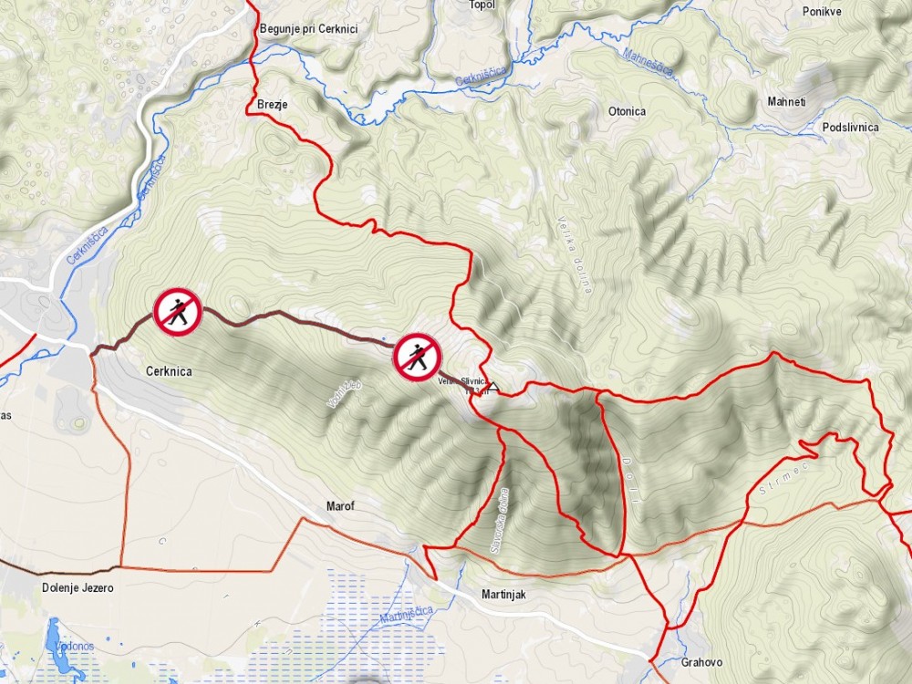 torek, 9. marec 2021 ob 15:25, ogledov: 4052 Pot iz Cerknice na Slivnico ponovno odprtaPlaninsko društvo Cerknica | | | Objavil(a): Matej Ogorevc | | Planinsko društvo Cerknica obvešča, da je planinska pot iz Cerknice na Slivnico po končani sečnji ponovno odprta. | Prvotno obvestilo: zaradi sečnje in spravila lesa je pot zaprta do predvidoma 10. aprila 2021. Obhod poti je ustrezno označen.