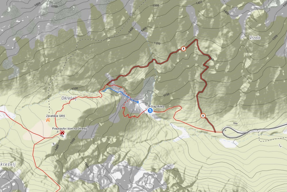 OBVESTILO UPORABNIKOM PLANINSKIH POTI: Uporabnikom planinskih poti priporočamo, da se na spletni strani stanje-poti.pzs.si, v bližnji planinski koči ali pri lokalnem planinskem društvu predhodno informirajo o dejanskem stanju planinskih poti. Če opazite poškodbe planinskih poti ali njihovo neustrezno urejenost (obledele markacije, zaraščenost ipd.), prosimo, da na naslov poskodbe.poti@pzs.si pošljete sporočilo, v katerem navedite, na kateri planinski poti ste opazili pomanjkljivost in pomanjkljivost opišite ter če je možno, dodajte tudi fotografijo.
