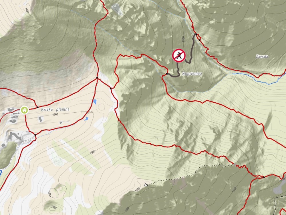 petek, 8. julij 2022 ob 16:00, ogledov: 3430 Zaprta pot med Košutno in Koprivnico pod Kriško planino | Planinsko društvo Kamnik | | | | Objavil(a): Matej Ogorevc | | Planinsko društvo Kamnik obvešča o začasni zapori odseka planinske poti iz doline Korošice proti Krvavcu. | Začsno je del planinske poti iz doline Korošice proti Krvavcu in sicer odsek med razcepom Košutna in Koprivnico pod Kriško planino.