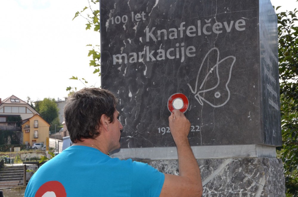 ponedeljek, 19. september 2022 ob 14:55, ogledov: 3294 Oče markacije Alojz Knafelc dobil spominsko obeležje v rojstnem Novem mestu| Objavil(a): Barbara Gradič Oset | | Nobena sodobna tehnologija nam planincem ne pričara toliko nasmehov, občutka varnosti in dobre volje kot prav Knafelčeva markacija. Vedno ko jo zagledamo, vemo, da smo na pravi poti. Očetu znamenitega rdeče-belega kroga Novomeščanu Alojzu Knafelcu so predstavniki Planinske zveze Slovenije, Mestne občine Novo mesto, PD Krka Novo mesto in Krke, tovarne zdravil, d. d., Novo mesto na stičišču Pugljeve ulice in Župančičevega sprehajališča v središču Dolenjske slovesno odkrili spominsko obeležje. | Le kdo ne pozna planinske markacije? Bele pike z rdečim krogom, narisane s čopičem brez šablon v razmerju 1:2? Knafelčeva markacija je zagotovo najbolj prepoznaven simbol Planinske zveze Slovenije (PZS), že 100 let nas varno vodi po planinskih poteh. Avtor te markacije je kartograf, planinec in oskrbnik Koče pri Triglavskih jezerih Alojz Knafelc, rojen leta 1859 v Šmihelu pri Novem mestu, umrl je leta 1937 v Ljubljani. Knafelc, načelnik markacijskega odseka Slovenskega planinskega društva (SPD), je leta 1922 z objavo Navodil za markiranje potov v Planinskem vestniku uveljavil enoten sistem označevanja planinskih poti SPD, ki je v veljavi še danes. » Knafelčeva markacija, bela pika obkrožena z rdečim kolobarjem, je seveda ključni del širšega sistema označevanja planinski poti, poleg markacije uporabljamo še smerne puščice in usmerjevalne table. Usmerjevalne table je Knafelc pobarval z rdečo bravo in nanje z belo bravo napisal smeri in čase hoje. Tudi po 100 letih sledimo njegovemu zgledu, le da je vsebina tabel danes dopolnjena s podatki o višini stojišča, dimenzije pa so nekoliko spremenjene. Knafelc je z izbiro barv in oblike markacije zadel v polno, ustvaril je lep, enostaven in dobro viden simbol,« je o zgodovini markacije povedal predsednik PZS Jože Rovan.
