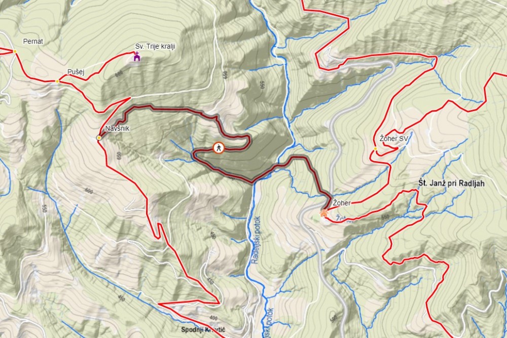 četrtek, 5. januar 2023 ob 17:20, ogledov: 1884 Odsek Kozjaške poti med domačijama Žohar in Navšnik ponovno odprtPlaninsko društvo Maribor Matica | | | Objavil(a): Matej Ogorevc | | Kozjaška pot na odseku med Žoharjem in Navšnikom je ponovno odprta. Na mestu nekdanjega mostu so postavili nov kovinski most in omogočili prehod čez potok.