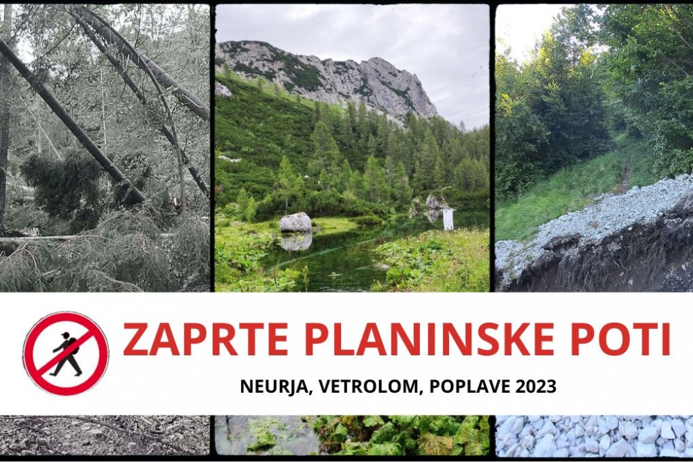 četrtek, 10. avgust 2023 ob 13:30, ogledov: 64158 NEURJA in POPLAVE 2023 | Zaprte planinske poti zaradi posledic neurij in poplavObjavil(a): Matej Ogorevc | | Zaradi množičnega poročanja objavljamo celoten spisek planinskih poti, zaprtih zaradi posledic neurij, vetroloma in poplav. |