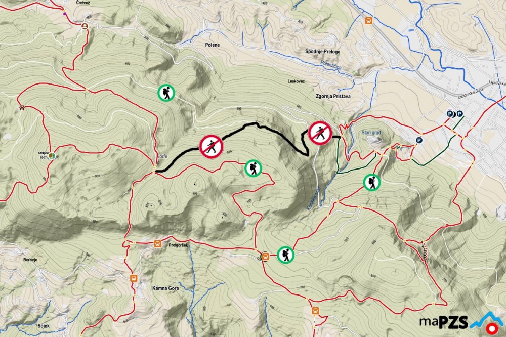 petek, 10. oktober 2025 ob 00:00, ogledov: 6 ZAPRTA POT | Stari grad nad Sl. Konjicami - Grofov štantObjavil(a): Matej Ogorevc | | | Planinska pot med Veliko ravno nad Starim gradom pri Sl. Konjicah in Grofovim štantom je zaradi sečnje in spravila lesa ZAPRTA.