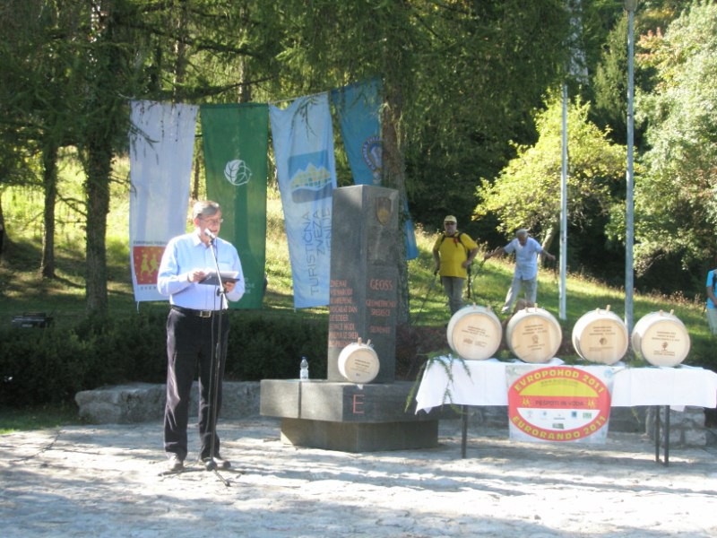 Nato je pozvala k nagovoru predsednika Komisije za evropske pešpoti Slovenije Jožeta Praha, ki je opisal potek Evropohoda 2011 ter njegov simbolni pomen. Svoje nagovore so imeli tudi predstavniki vseh štirih organizacij, ustanoviteljic Komisije za Evropske pešpoti Slovenije. V imenu Turistične zveze Slovenije je udeležence pozdravil predsednik Peter Misja, v imenu Zavoda za Gozdove, direktor Jošt Jakša, v imenu Planinske zveze podpredsednik Tone Tomše in v imenu Zveze gozdarskih društev, predsednik Jože Falkner. Vsaka članica Komisije za evropske pešpoti je namreč v preteklih mesecih na različnih lokacijah v Sloveniji zajemala vodo v posebne lesene posode, ki so bile nato prinesene na to zaključno prireditev.