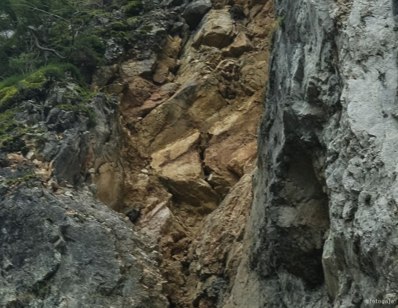 Na naslovni fotografiji je povečan pogled na labilne skale, ki bodo slej kot prej zagotovo zgrmele na pot, opozarja geolog Aleš Zdešar.
